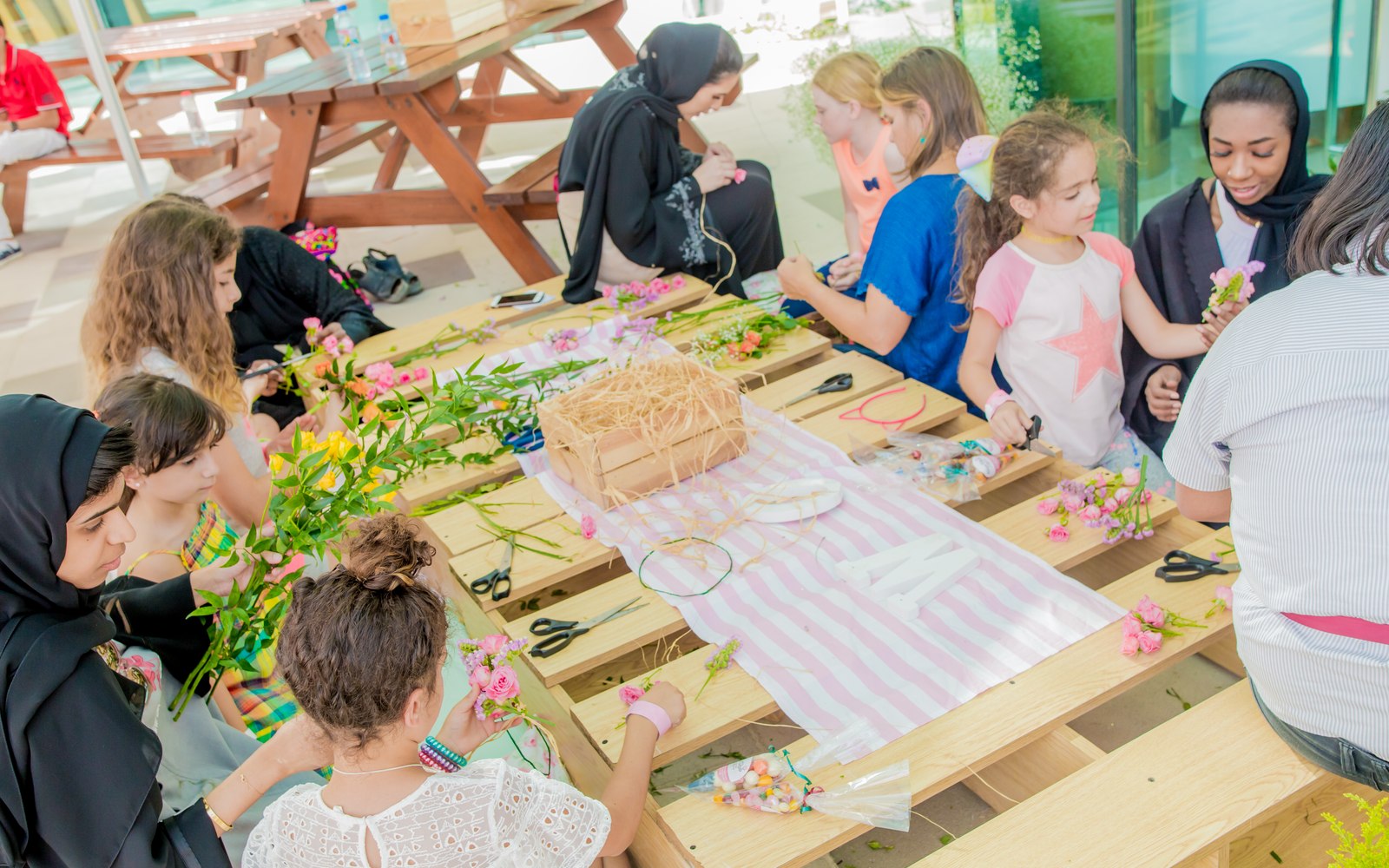 To celebrate the blooming season, women and children can make headbands (AED 30) and wristbands (AED 15) using fresh flowers.